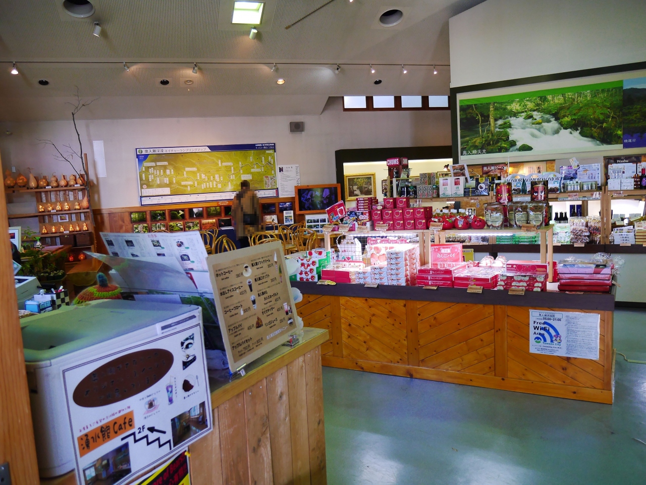 子ノ口からレンタサイクルを借りて奥入瀬渓流を楽しんでから、サイクルの返却(乗り捨て)のために訪問しました。奥入瀬渓流の下流側入口にあたるところにあり、大きな駐車場もありました。店内には、ひょうたんランタンや各種お土産、軽食が用意されていて、渓流訪問前の情報収集や各種準備に便利かと思います。