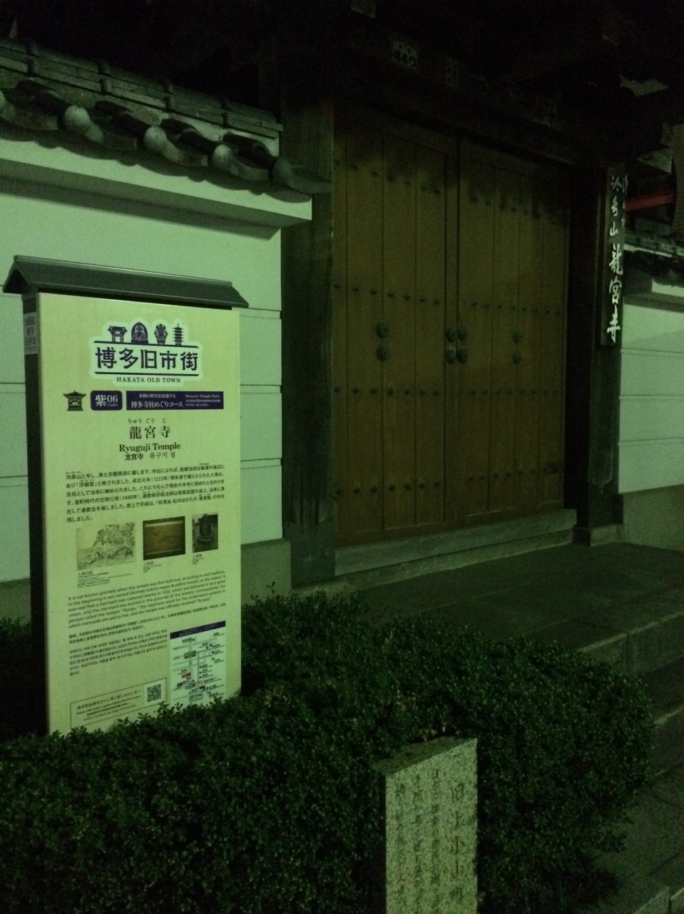 博多の寺社巡りコースに入っている観光スポットでした。徒歩で行き、東長寺の向かい辺りにひっそりとたたずんでいます。人魚が祭られているという何とも笑ってしまいました。英語と中国語の説明も書かれていて、QRコードも看板にありました。