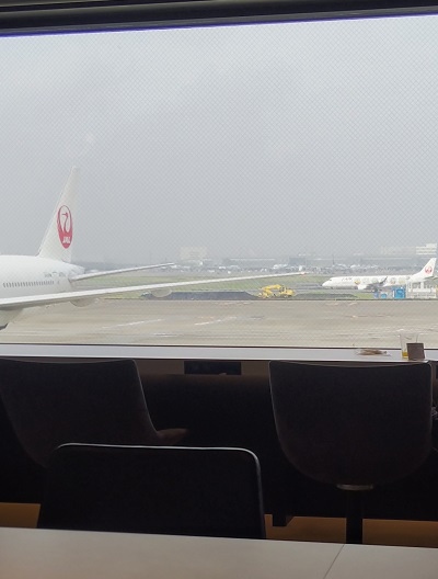 羽田空港の第一ターミナルにあるラウンジです。保安検査を受けたあとにあります。クレジットカードと保安検査場でうけとった搭乗案内を見せて入りました。朝の時間だったので、飲み物に加えてクロワッサンのサービスもありました。