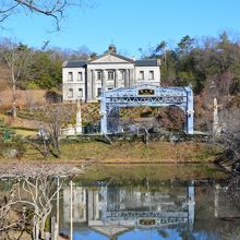 入鹿池という池に面した100万㎡というとてつもなく広いの丘陵地に、フランク・ロイド・ライトの帝国ホテルなどの重要文化財11棟を含む67棟の建物がありました。