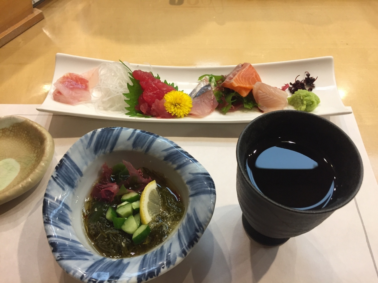 びゅうのクーポンを利用し、刺身と地酒、そして寿司のプランを利用。