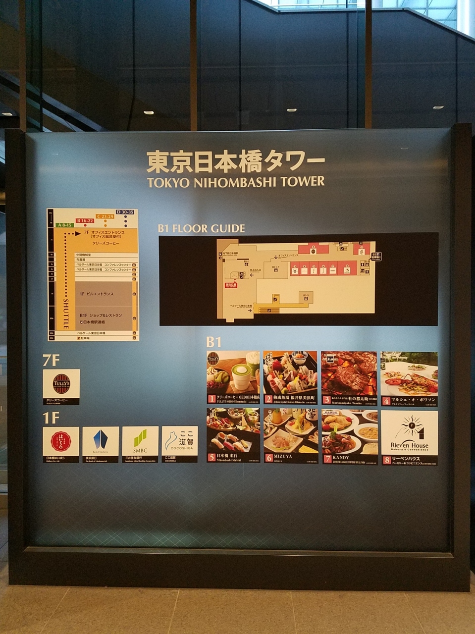 東京日本橋タワーは、永代通り、中央通り、昭和通りに囲まれた一角に建ち、200m近い高さを誇ります。永代通りを挟んで反対側はコレド日本橋、地下鉄駅の真上に位置する日本橋の一等地にあります。オフィスがメインで、地階にレストランフロアがあります。日本橋高島屋とも繋がっており、車買い物の時には提携しているこちらの駐車場を良く利用します。