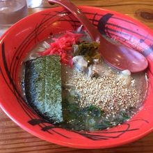 九州で食べる豚骨ラーメンと同じ細めのストレート麺。豚骨にはこの麺があいますね。