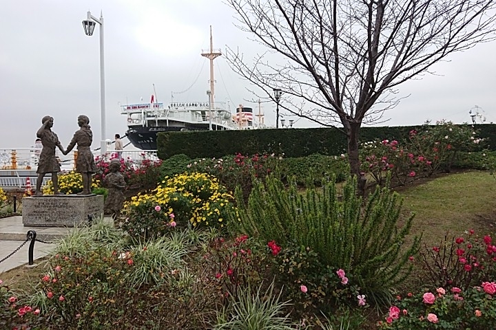 氷川丸前あたりにある象です。台座には「やくそく」と彫られていて「ガールスカウトの友情」を示す像とされています。