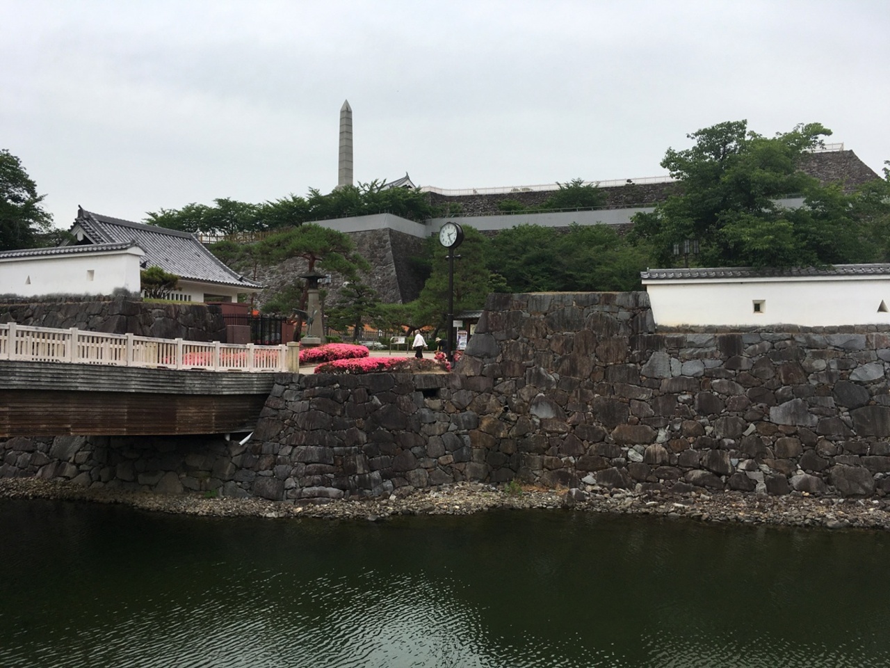 甲府城の南側の堀にかかる橋で、ここから階段を登って主郭部へ入る入口にあたり、高い部分にある主郭部や、復元された門などを臨むことができる場所です。何より立派な甲府城の石垣がそびえる様子を全体に眺めることができる場所であり、駅からのアクセスとは反対側になりますが、甲府城ではぜひ訪れておきたい場所です。