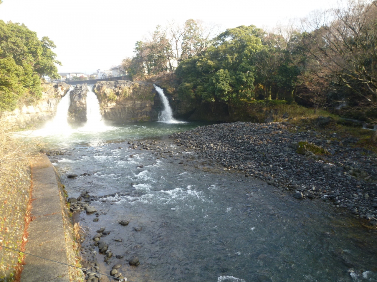 富士山の雪解け水でしょうが、すごい水量で川から5か所流れ落ちるその画は、迫力があります。自然の力強さを感じれました。滝は3つの大きな滝と右端に小さいのが2個あります。滝は吊り橋から見ることもでき、アスレチック気分で見れます。