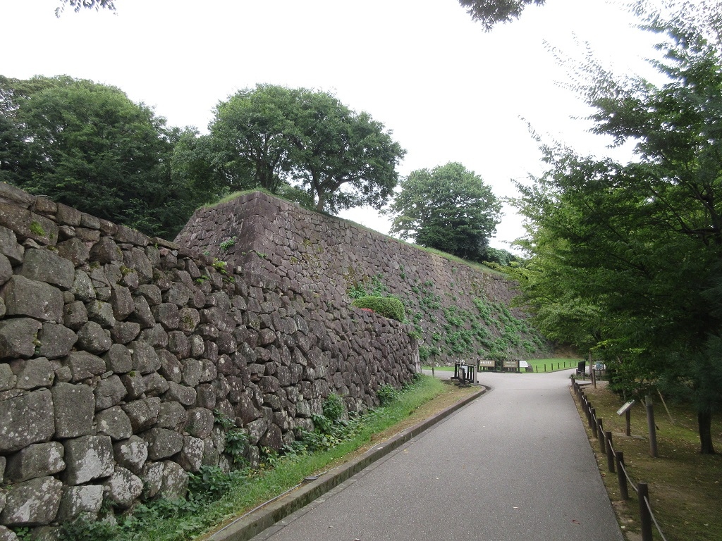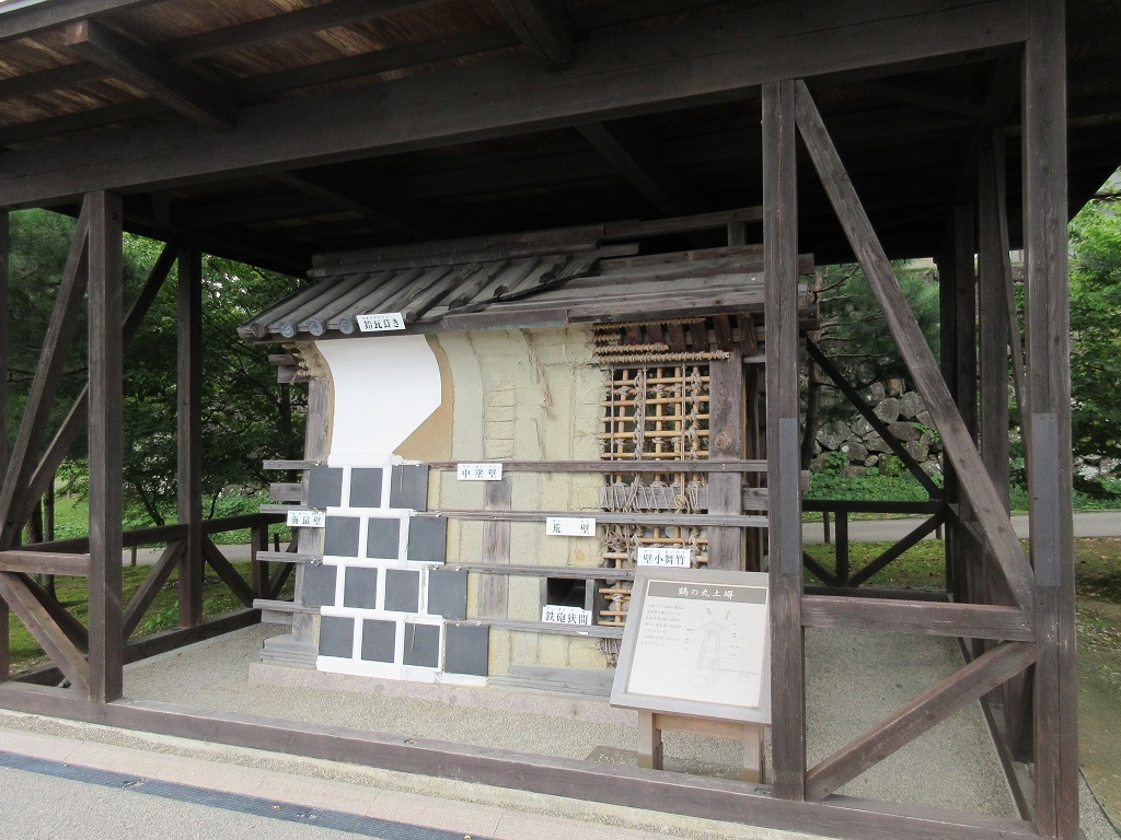 金沢城の三の丸広場と本丸園地に挟まれた場所で、【鶴の丸休憩館】があるあたりです。金沢城の特徴である海鼠壁の構造模型が置かれていて、どのように作られているのか、非常によくわかりました。こうした展示物があると、お城の見学もより専門的で興味深く感じられると、非常に感心しました。重要文化財の【鶴丸倉庫】もこの一角なので、併せて見学しました。