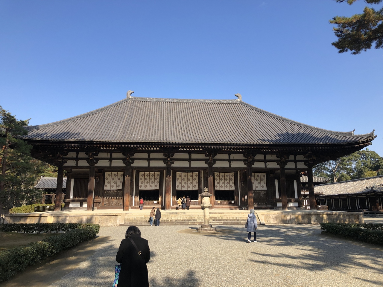 なんとも言えない柔らかな曲線と優しい鴟尾、これらを眺めているだけで飽きない。知らず識らずのうちに自分の心まで穏やかになってくるから不思議だ。内部には盧舎那仏をはじめとする国宝や重要文化財の仏像がさらに心を癒してくれる。