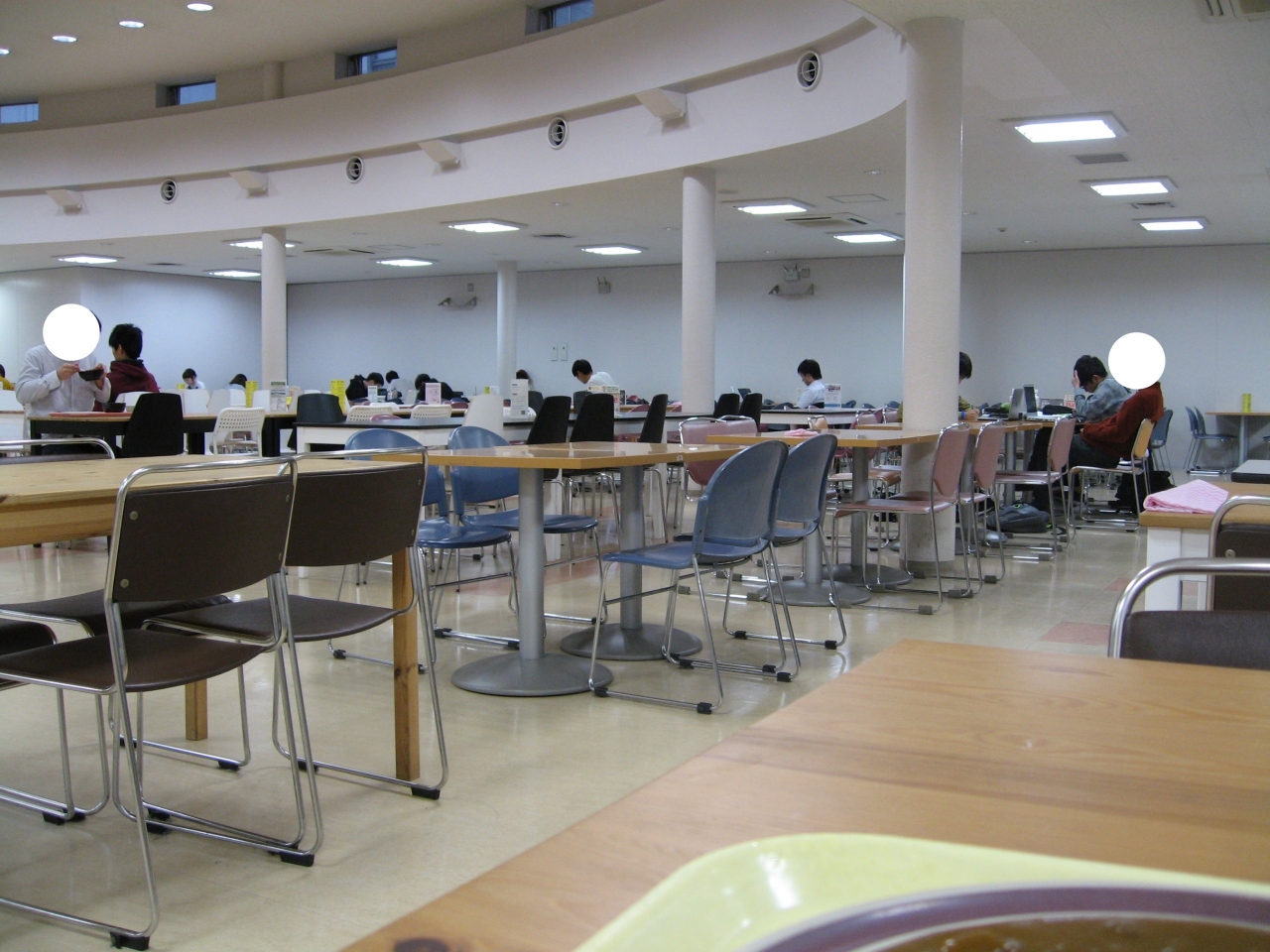食堂は余り広くありませんので、学生のお昼休みは外して下さい。