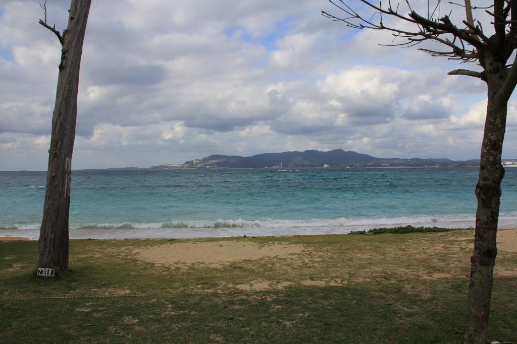 沖縄本島へ行くと記念撮影スポットとしていつも立ち寄るビーチです。南国の青い海を挟んで向かいには本部半島の山があります。 駐車場も無料だし、トイレもあるし、夏はコインシャワーも使えます。砂浜 白い砂のロングビーチ、ビーチの端には黒い色も飛び出していて、白黒のコントラストも綺麗です。