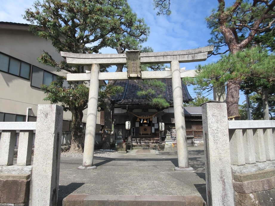 金沢の観光スポットの一つである東茶屋町の奥にある神社で、説明書きによると藩公認の茶屋町としてこの場所が生まれた時、芸妓たちの守り神として天満宮をこの地に勧請したことが始まりとのことで、東茶屋街の守護神といった存在とか。境内には他にこれといった見所はなく、訪れる観光客もほとんどいませんでしたが、茶屋町とのつながりに思いを馳せながら見学させて頂きました。