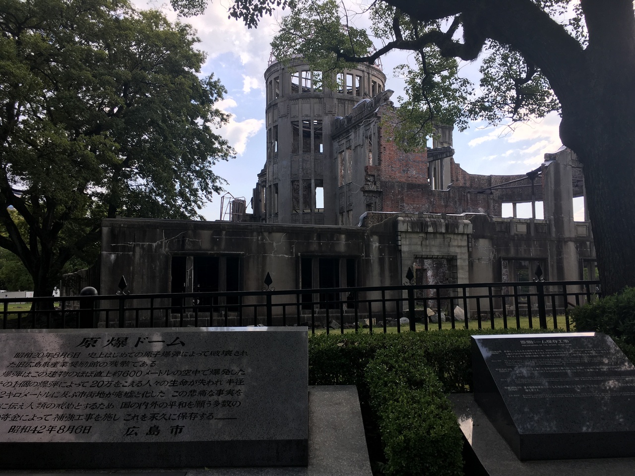 久々に訪れましたが、いつ来ても歴史の重圧を感じる特別な場所です。今や日本人よりも外国人観光客の方が多く訪れているようで、特に欧米の方が多かったように思います。最近この原爆ドームの当時の写真がカラーで復元できたと話題になっていましたが、戦後70年以上たった今もこうしてありのままの形で残っていることに感服いたします。今後も受け継いでいかなければいけない負の歴史だと思います。