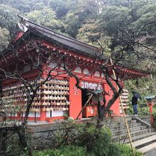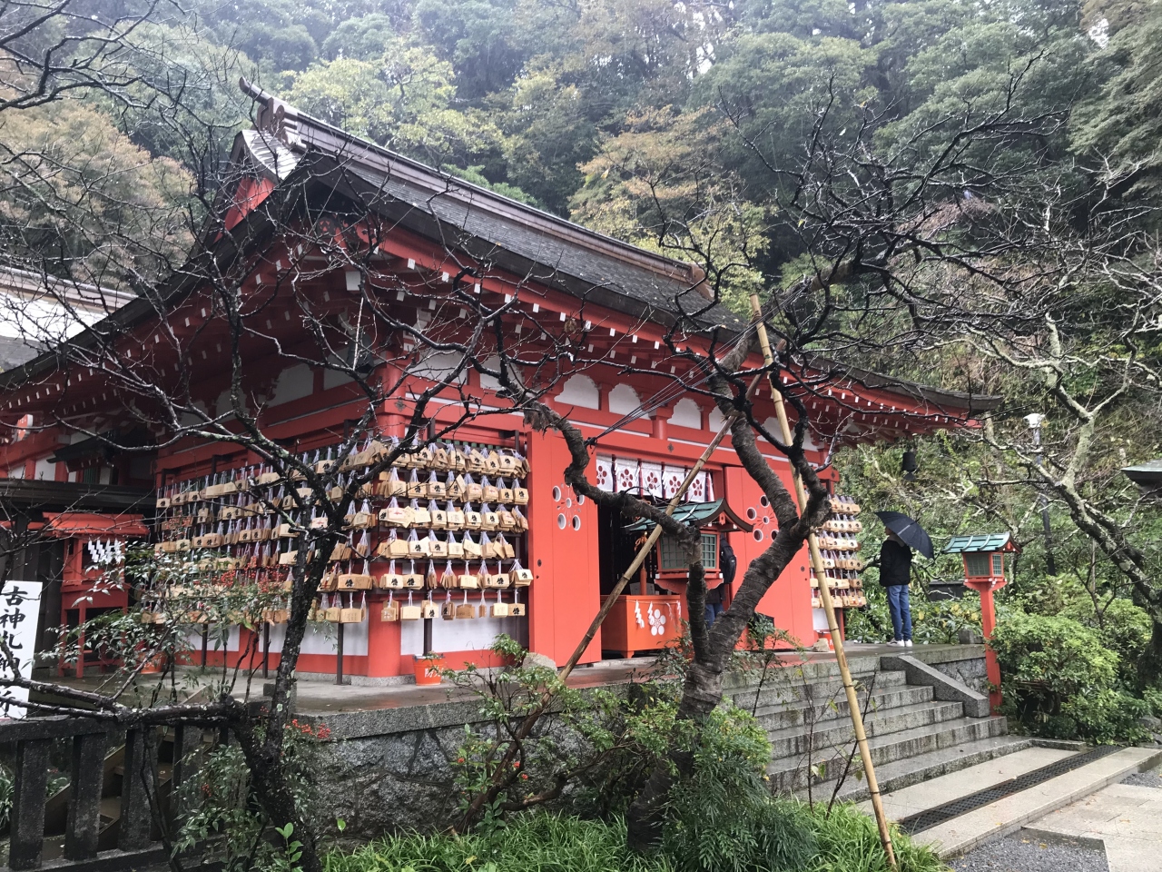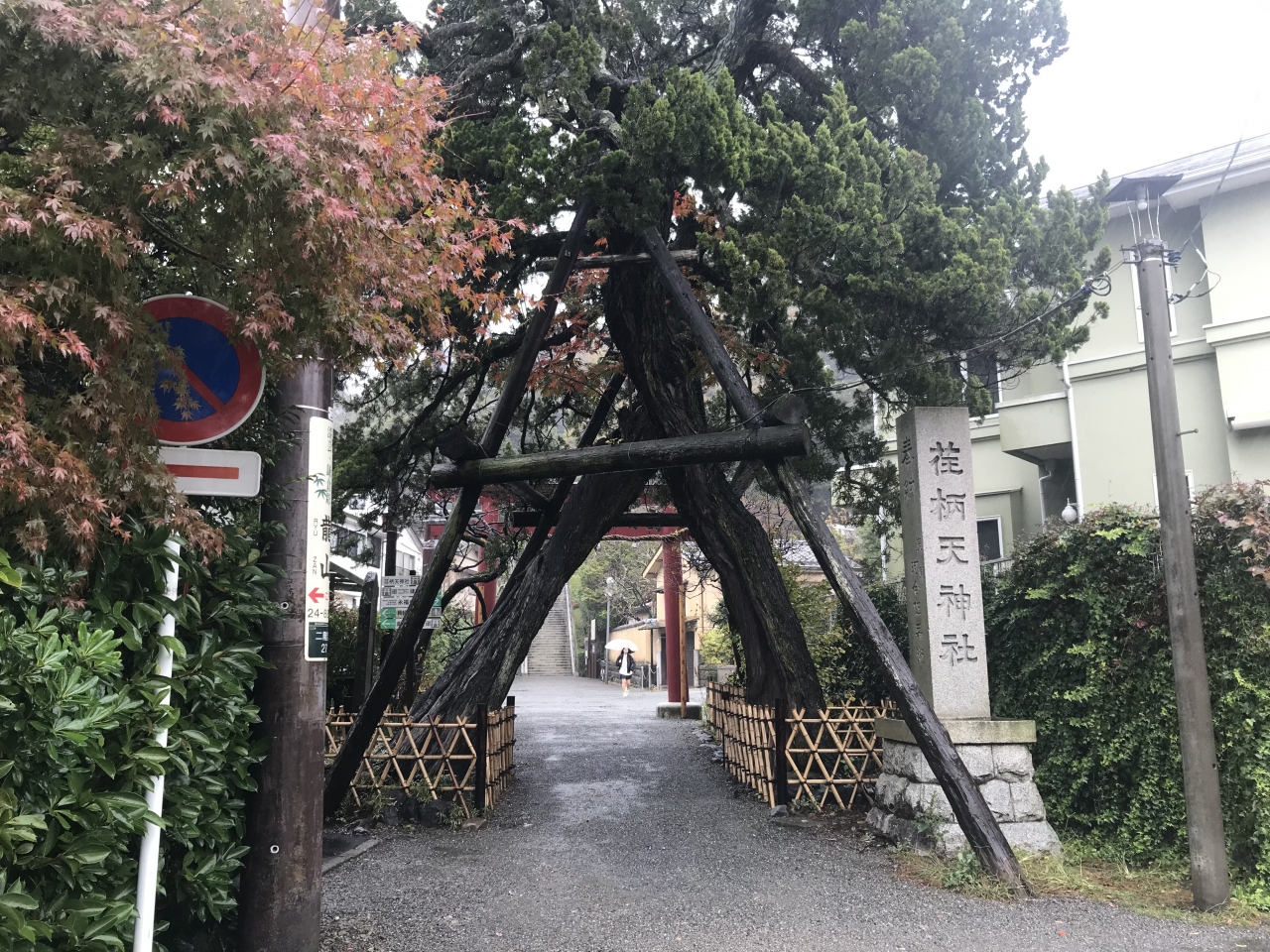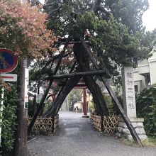 雨の中、鶴岡八幡宮から歩いてこちらに行きました。20分くらい歩いて到着。神社の入り口に、木が交差して門を形作っているのが印象的です。