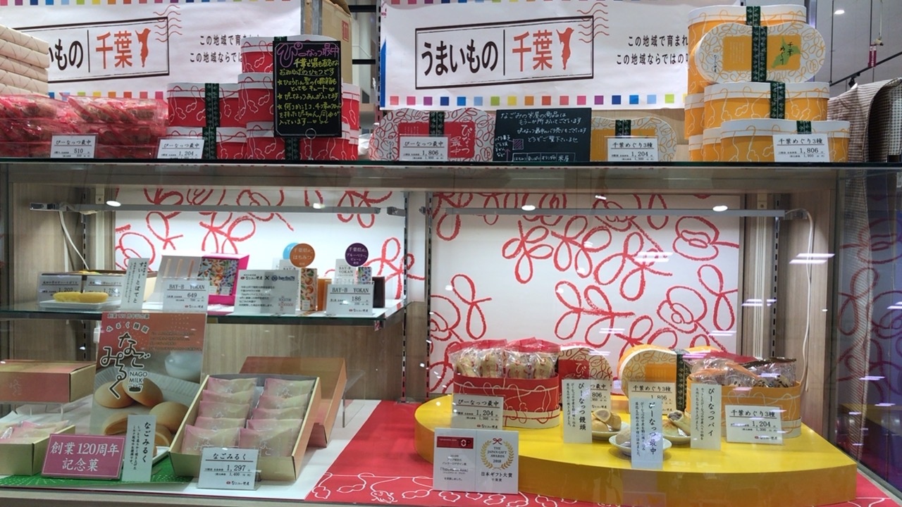 成田発の和菓子のお店です。イオン幕張新都心のグランドモール1階にお店があります。羊羹や塩大福が人気です。ピーナッツの形をしたボックスにピーナッツを使ったピーナッツ最中が入ってる商品は千葉土産にちょうど良いと思います。帰省の際にお土産に持って行ってとっても喜んでもらえました。イオンに入っているのでWAONカードで払える点も便利でした。