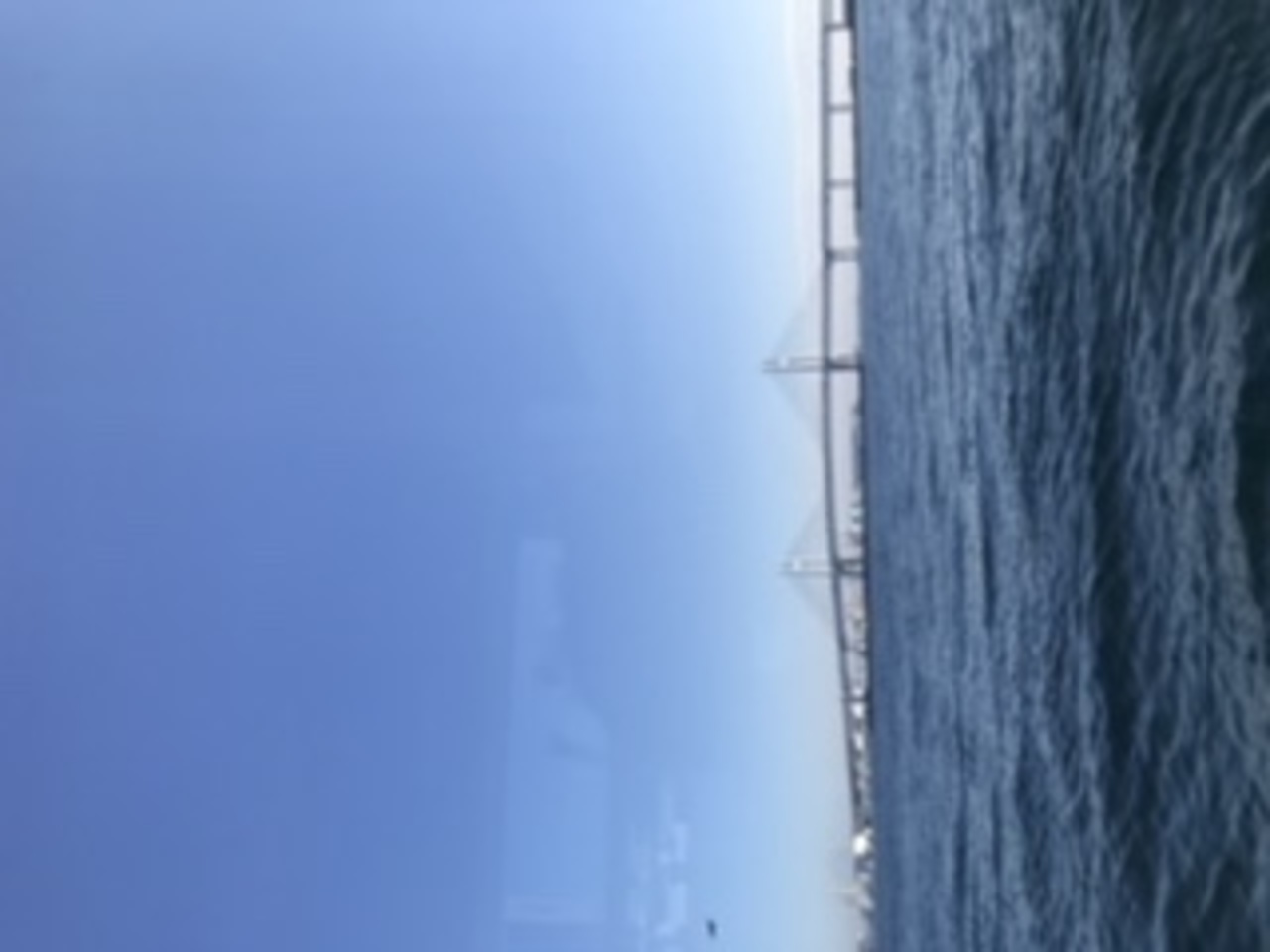 横浜ベイブリッジ。横浜港のシンボル的な存在でもあります。YOKOHAMAのHの形をした橋で、遠くからもすぐにわかる吊り橋です。東京方面から山下公園の方面に行くとここを通ります。交通量も多かったです。きれいな橋です。