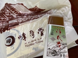 和菓子を購入する事となり、有名な和菓子店である峰月堂に立ち寄ってみました。今回は津和野で有名な源氏巻を購入しました。ハーフサイズの源氏巻を販売されており、これが丁度良い量でとても良いと思います。甘さひかえめで美味しいのも良いと思います。