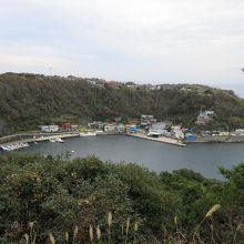この見晴らし台は高台から港を見下ろす形になり、もともと火口湖だったものを浚渫工事により港としただけあって、深く切り込んだ入江が天然の良港となっていることを実感できる場所です。