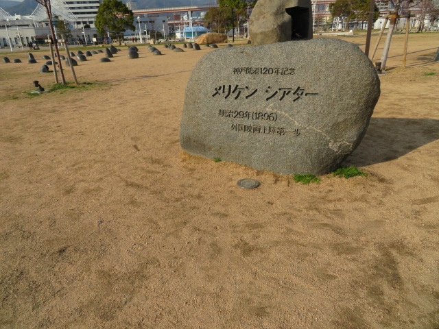 メリケンシアターと書いてある石碑があり、そこには、神戸開港120年記念とあります。あと、明治29年 外国映画上陸第一歩とあったので、こんな時代に外国映画が上陸されていたのかと、勉強になりました。もちろん映画館はありません。