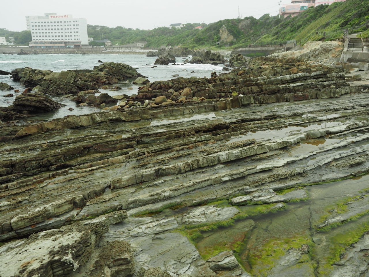 犬吠埼は景勝地として美しい場所ではありますが、海岸沿いにある遊歩道を歩くとまた違った魅力がありました。それは国を天然記念物にも指定されている「犬吠埼の白亜紀浅海堆積物」が見れる事です。生痕化石や硬い砂岩が残り荒々しい景観の砂岩泥岩互層。さらに犬吠埼灯台下の地層は1億2000万年前のもの。関東平野ができるまでは銚子は島だったというから壮大なスケールの時の流れにロマンを感じます。