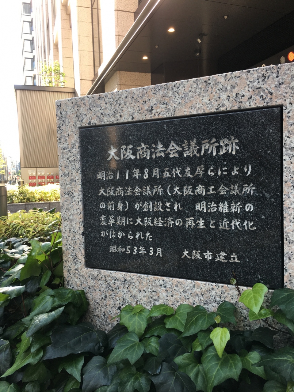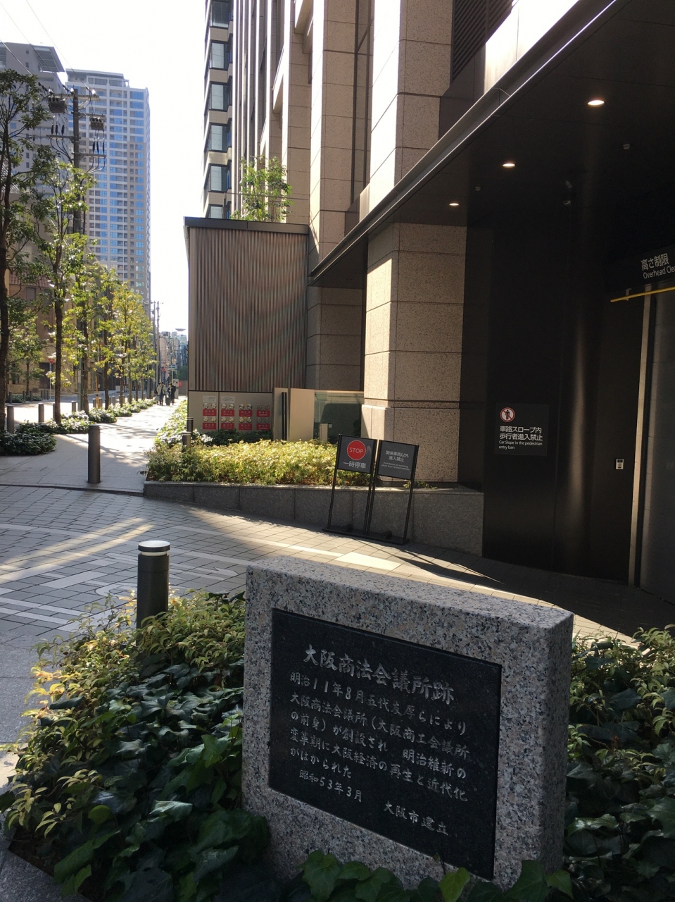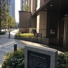 大きなビルの片隅に低い新しい綺麗な石碑がありました。横には地下に繋がる駐車場の出入口のようでした。石碑の周りはコンクリートで、石碑を草で囲んでいました。今は跡形もなく石碑があるだけなので、観光要素はなかったです。