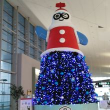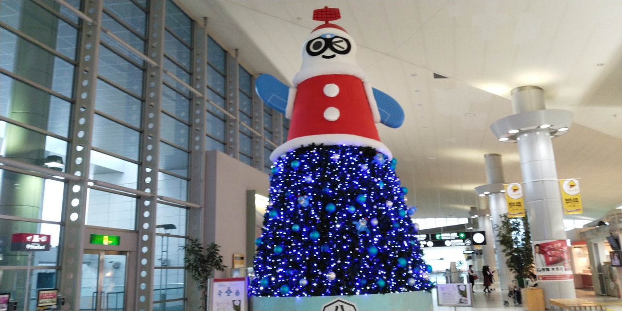 空港の外と写真のソラミイがクリスマスバージョンになっていました。
