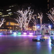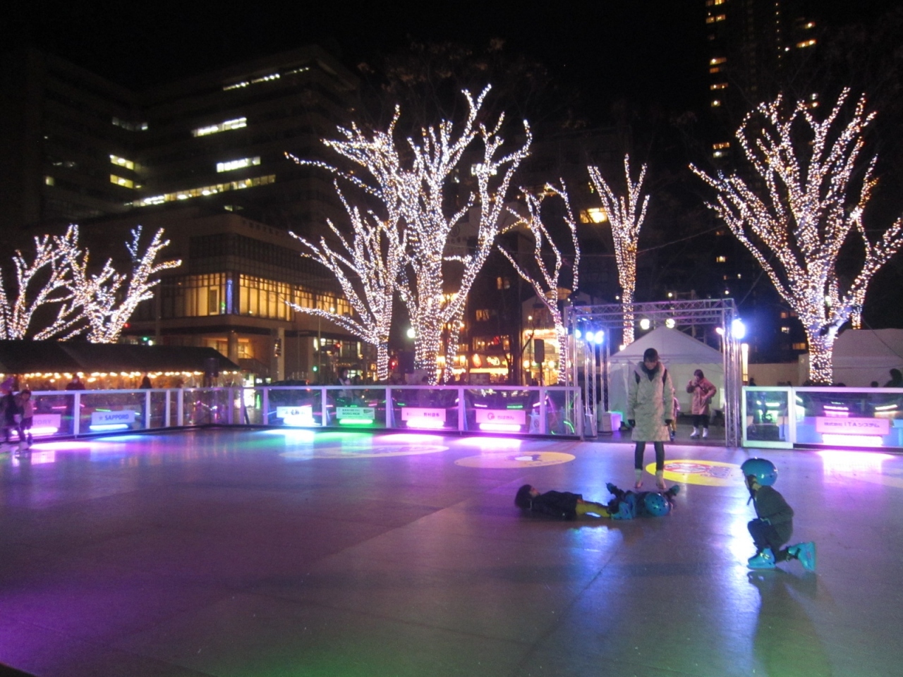 約400㎡の国内最大級の合成アイススケートリンクが期間限定でオープンしています。最大級といっても以外に小さい?プロアスリートも使用する世界最高品質の合成アイスは、転んでも濡れないし冷たくもないそうで、ちびっ子たちが楽しそうでした。イルミもきれいだし、近くにはキッチンカーが数台出ていました。