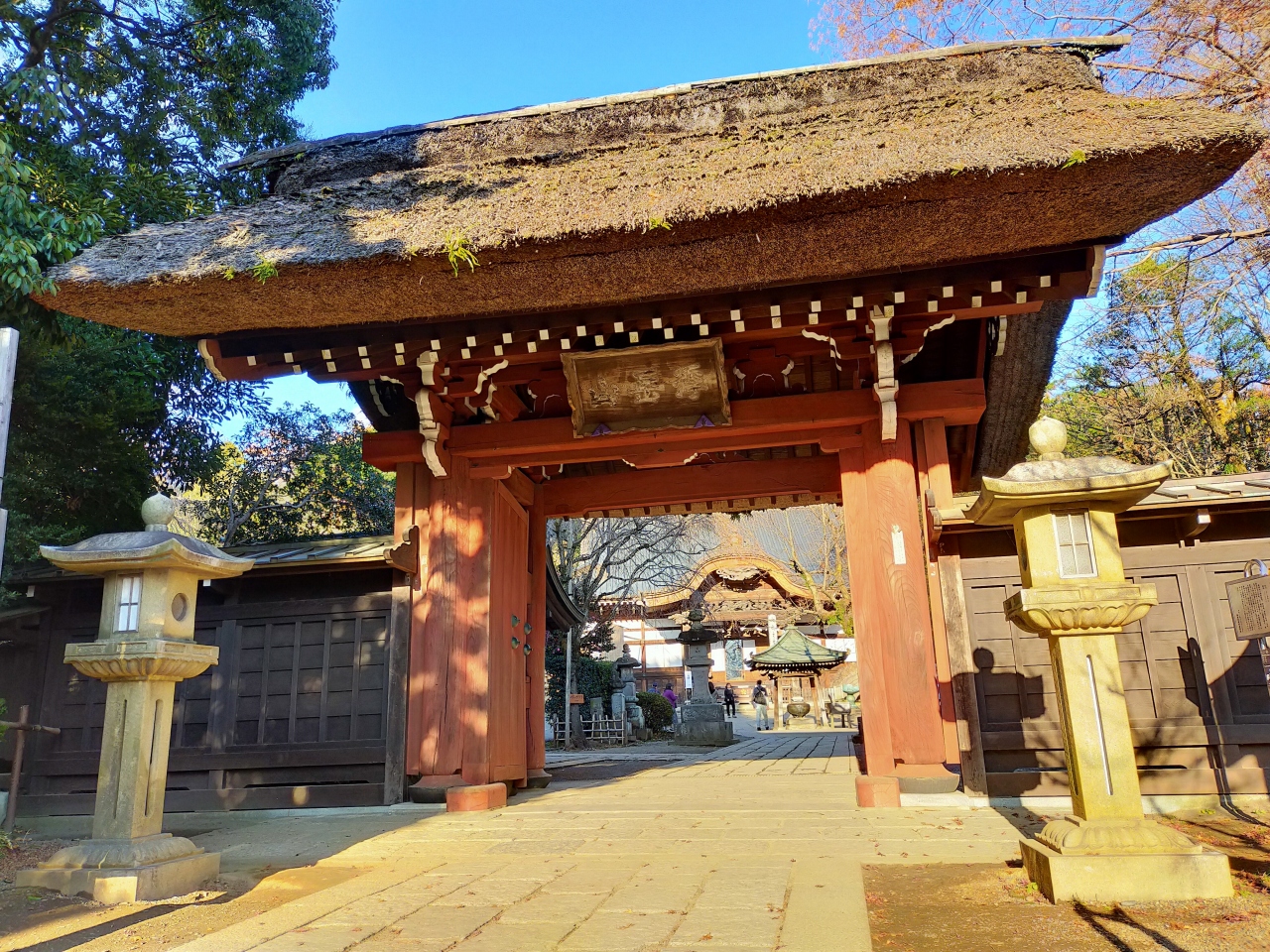 深大寺の参道の正面の階段で数段上ったところに茅葺屋根の山門がありますが、これは深大寺の境内の中でも一番古い建物で今から325年前の元禄年間に建てられたもの。