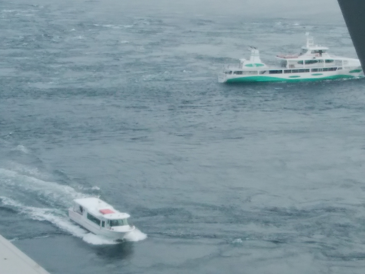 友人3人で、鳴門に出かけた時に、渦潮の観光船に乗るのにちょっと時間があったので、渦の道まで行ってきました。ここは、有料で渦潮近くまで、橋の上を歩いていくことができます。一番先には、足元が透明になっていて海を見ることができます。この日は、中潮でしたが、まだ1時間くらい前だったので、渦潮はなかなか変わりませんでしたが、眺めは良かったです。