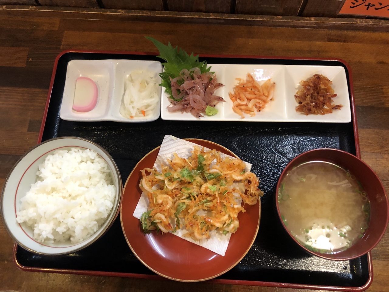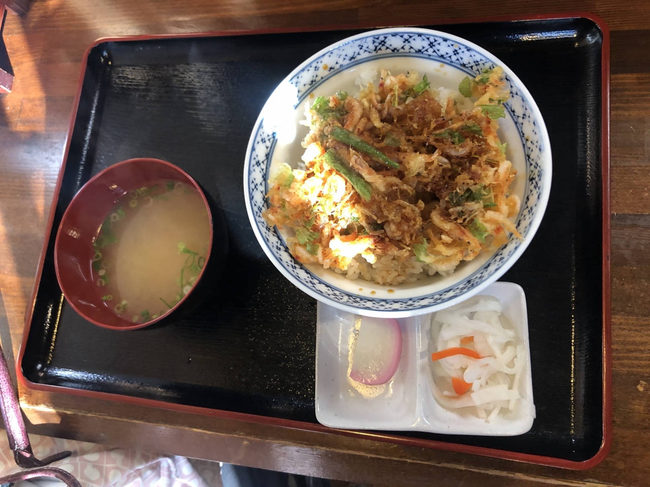 かき揚げは、小さめだがサクサク。鯵や鮪のメニューもあり、特に鯵は良さげだった。