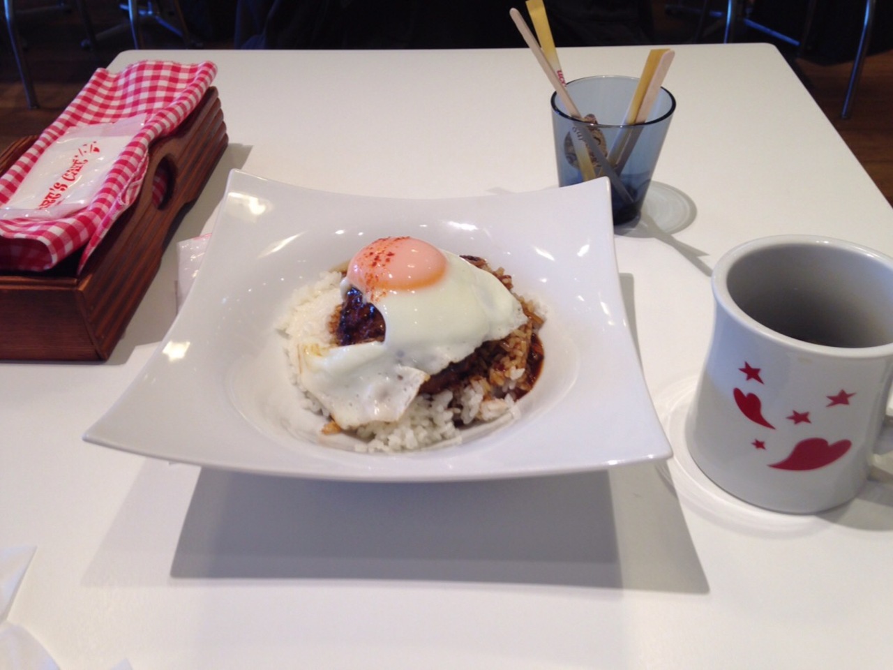 堂島リバーフォーラムの1階にあります。平日のお昼時に行きましたが空いていました。折角なので1日20食限定のロコモコ大阪堂島スペシャルランチセットを注文。5分~10分待つけど良いかと聞いてくれたのは良いのですがその間コーヒーが一番最初に出てきたのには閉口しました。ロコモコはハンバーグを切るとジュワーっと肉汁が出てきて食欲を誘いましたが味があんまり付いていなかったです。