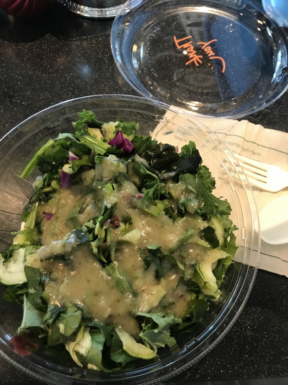 この日は仕事の締めでもあったので、さっぱりしたものを食べたくてサラダをUber eats しましたー!全体的にとてもグリーンなサラダ^ ^ ドレッシングはパクチーにしました。このサラダに自分で用意していたパンと一緒にランチ♡ 大満足です!