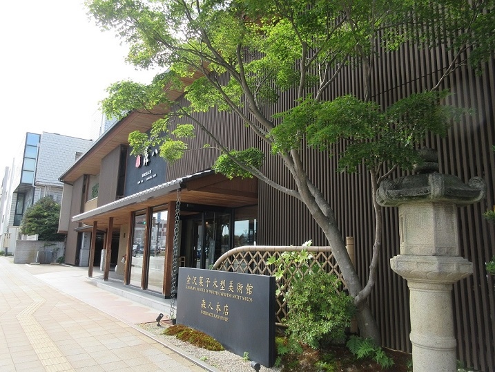 金沢城から東茶屋街に向かう途中、バスから降りて有名な和菓子屋さんの森八本店に立ち寄りました。金沢藩の御用達のお店であったとのことで、1階は色とりどりの美味しそうな和菓子が販売されていました。二階にカフェがあり、和菓子とお茶で至福のひと時を過ごすことが出来ました。上品な甘さの和菓子は、華やかな加賀藩藩政の時代の雰囲気を感じさせてくれました。