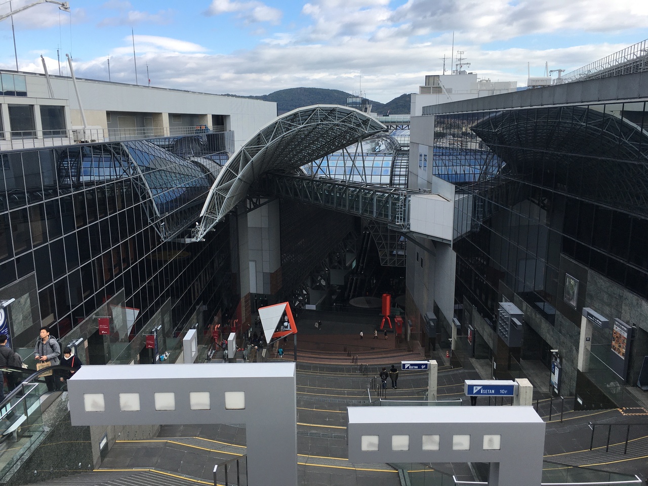 ビルの自体が駅と言うより、総合デパートといった感じです。伊勢丹もありましたが、そのほかにも飲食店や土産屋もたくさんありました。空中庭園がビルので上にあり長いエスカレーターで上がると京都駅内や遠くの山々まで見ることが出来ました。