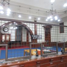 以前は北陸銀行として使われていた建物で、黒い壁と和風の屋根が特徴的でした。内部に入ると受付カウンターや頭取の部屋などが残っていますし、高い白漆喰の天井に吊り下げられた照明など、見ごたえがありました。無料で見学できるのはうれしかったですね。