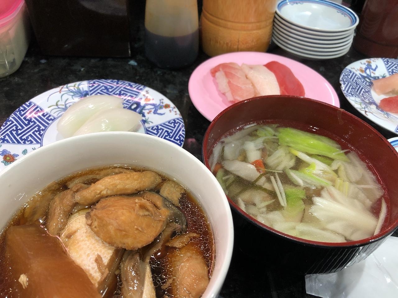 池袋の回転ずしの雄、若貴でランチをするなら、早めの入店をして、あら煮を選ぶべし。お値段たったの200円で、魚のあらたっぷりに大根がしっかり乗った小さな丼を温めてくれる。