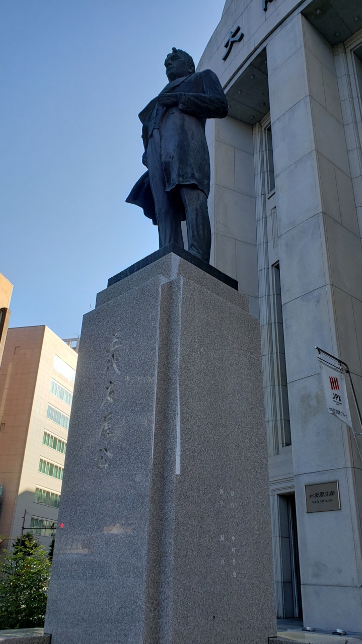 大阪北浜駅からすぐの大阪取引所の正面玄関前にどーんと立っている大きな像なのでとてもわかりやすいです。