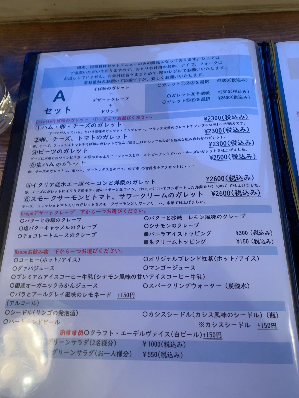 今回はおかずガレットと飲み物セットのBメニューを注文 税込1,650円
