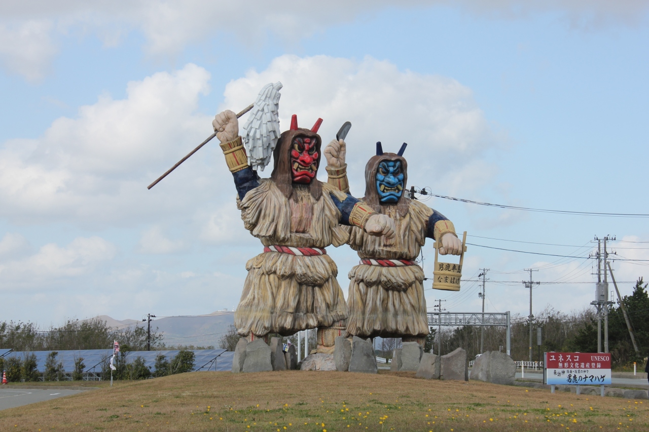 秋田から男鹿へ向う途中、国道101号線沿いに巨大な2体のなまはげ像が見えたので立寄りました。