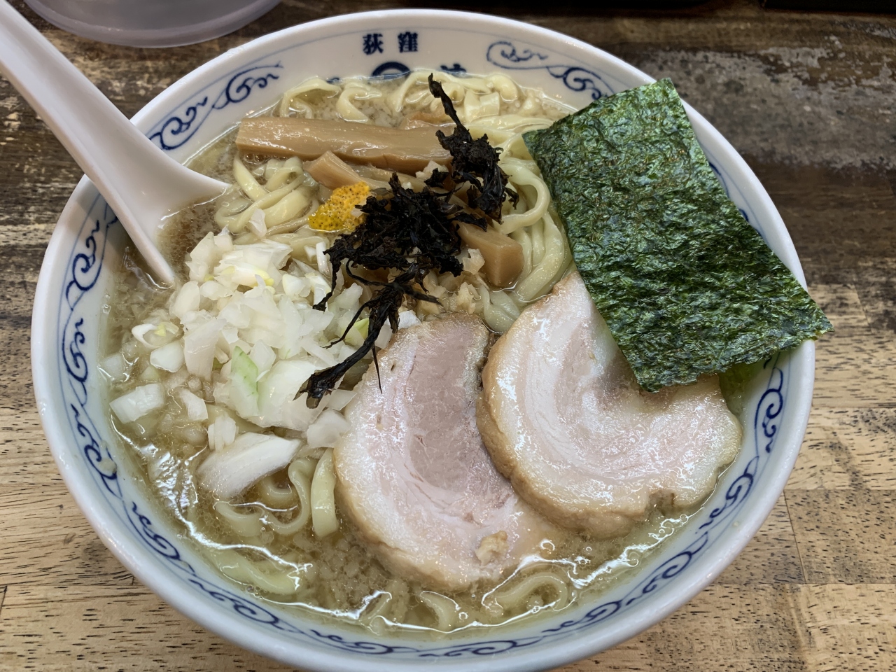 荻窪の商店街の路地にあるラーメン店です。煮干し出汁に背脂を散らしたスープで、香りの高さが感じられます。麺は平打ち面でスープとの絡みが良く美味しいです。メンマや分厚いチャーシューもインパクトがあり総合的にバランスが高いレベルです。おすすめです。