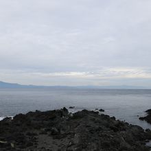 引き潮の岩礁では、岩海苔でも採っているのでしょうか、せっせと作業をしている人が一人。それ以外は人影もなく、寂しい景色でした。