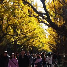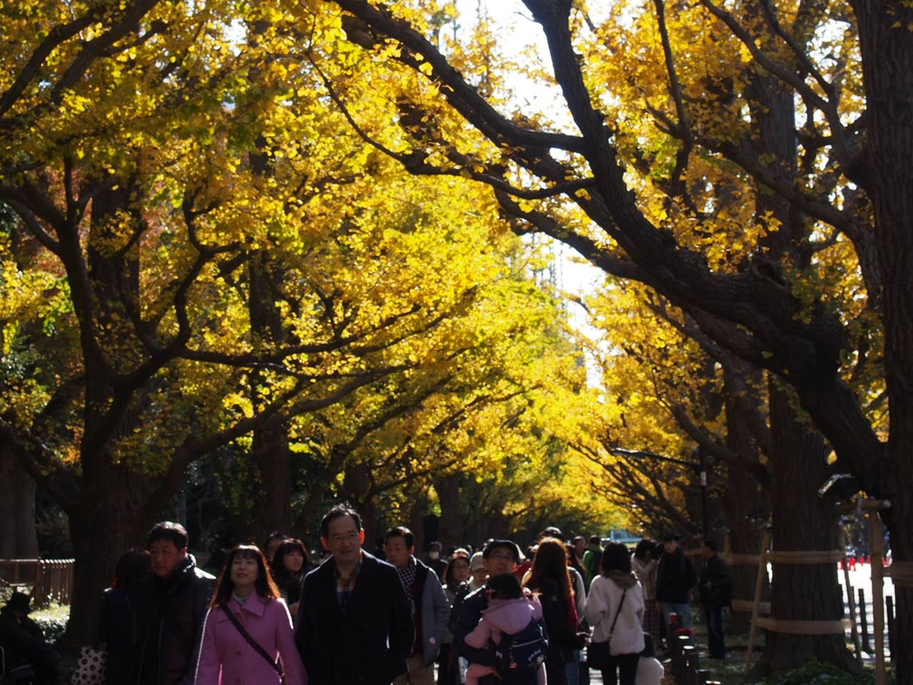 黄葉、紅葉。青山通り。通りといい雰囲気と言いいかにも東京!という雰囲気がする場所ですねえ。訪れた日も結婚式が行われておりいっそう華やかな雰囲気に。台風の影響なのか今年はやや銀杏の葉が寂しかったのがちょっと残念でした。