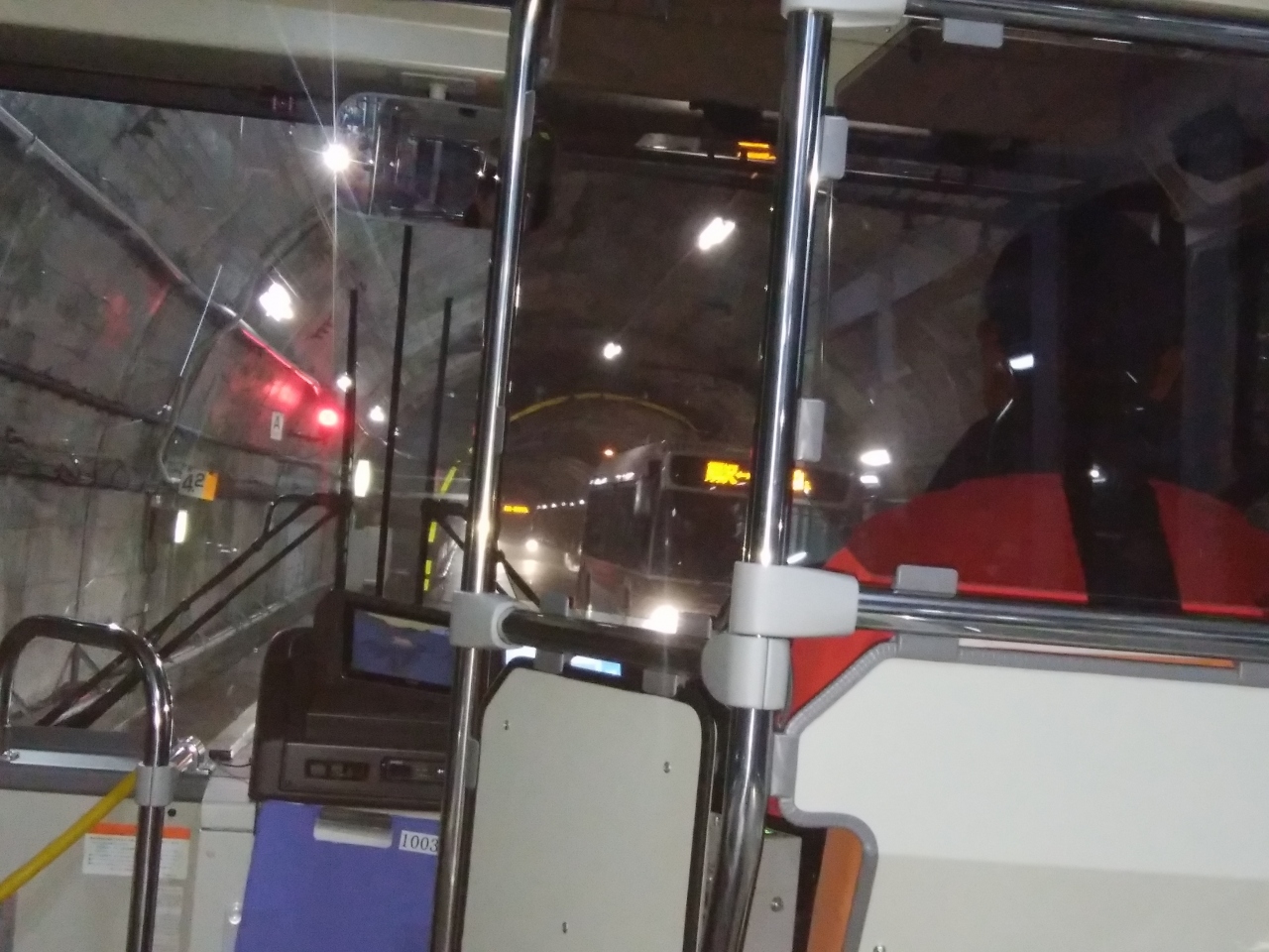 黒部ダムに長野県側から向かうには、扇沢から以前はトロリーバスでしたが、昨年6月に利用した時には、電気バスになっていました。扇沢から黒部ダムまでは、バスの時刻表があり、何台ものバスが連なって走っていきます。ちょうど中間地点では、黒部ダム側から来たバスとすれ違えるようになっていました。