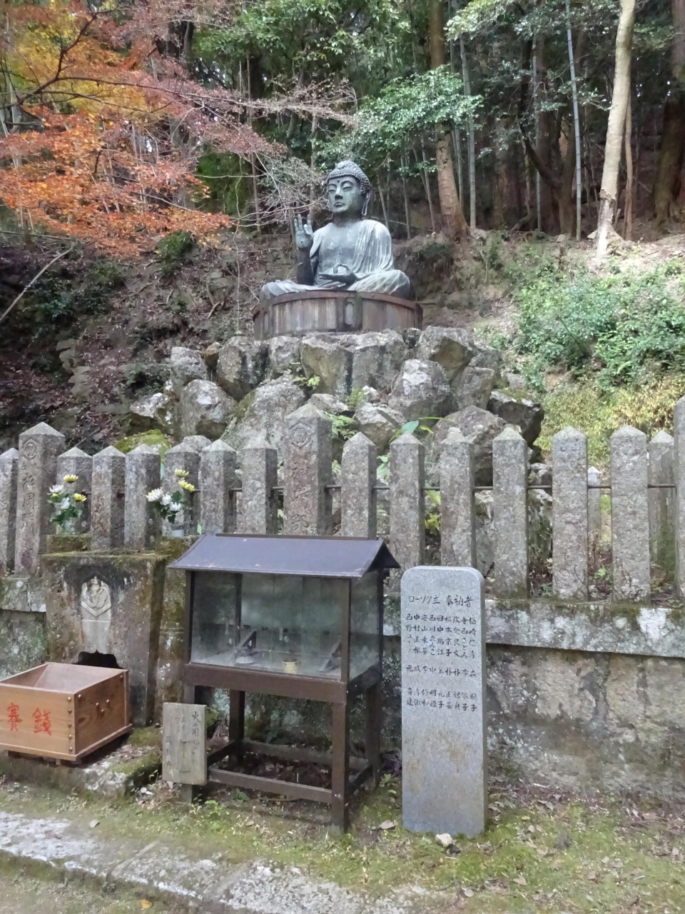 大仏があるのは摩尼殿から歩いて三つのお堂に向かう途中の山道。