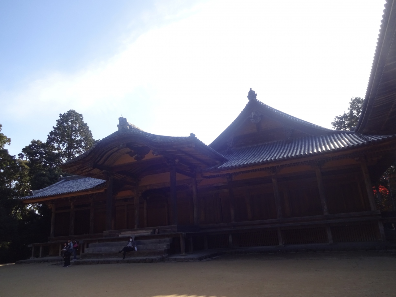 書写山圓教寺の摩尼伝からさらに進むと、三つのお堂がコの字に建つ場所が現れます。