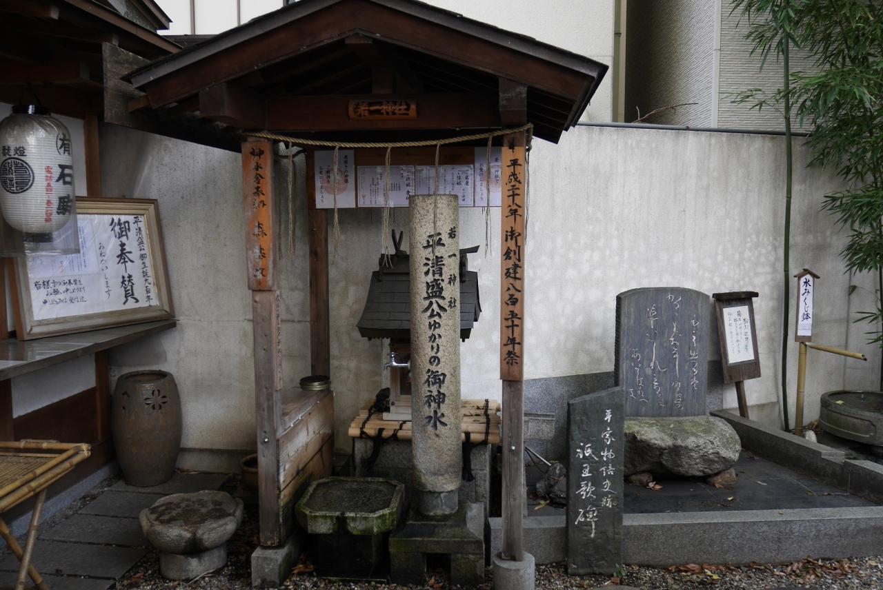 正月に、西大路七福社巡りのために立ち寄りました。西大路八条にある小さな神社です。平清盛にゆかりのある神社で、開運出世のご利益があるといわれています。歩道の向かいに清盛のお手植えの楠があるため、西大路が少し曲がっています。