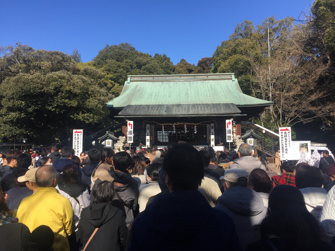 1/4 土曜日の 11時過ぎに初詣に出かけたが 階段から行列、境内に入ってもかなりの人が溜まっていた。