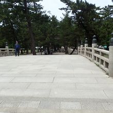 出雲大社の入り口の勢溜の大鳥居を抜けて、祓社でお参りをし、参道をまっすぐ進むと橋が見えてきます。