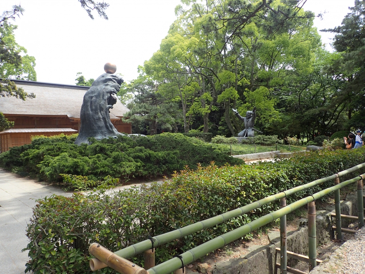 荒波の上に金の玉がのっている像と、少し離れてそれを拝むようにしゃがんで両手を広げているご神像があり、インパクトがありました。すぐ近くで拝んでいる人もいました。