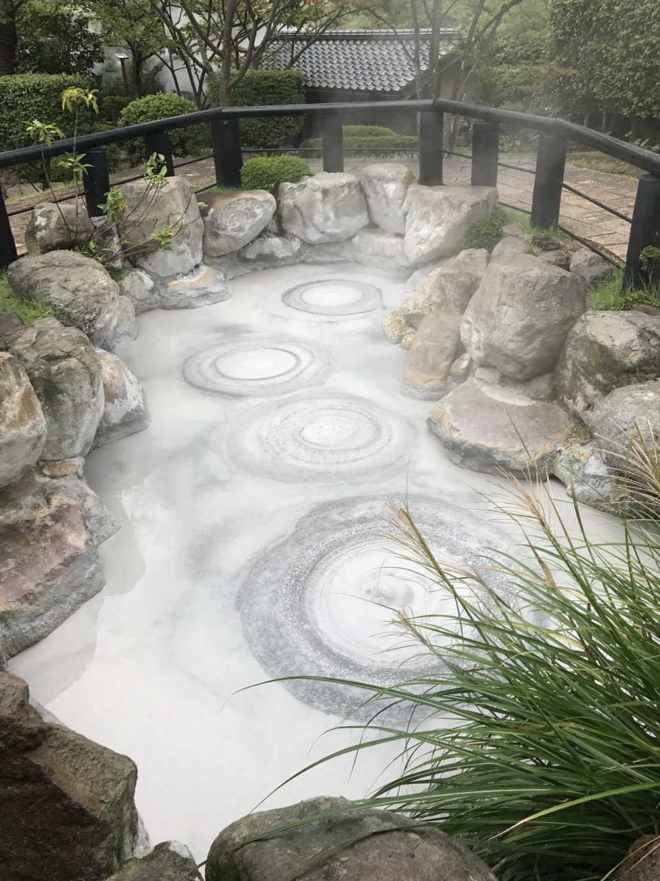 鬼石坊主地獄です。灰色の熱泥が沸騰しています。かなり小規模ですが、ぷくぷくと湧き出ているのを見ていると可愛いです。この地獄の奥には温泉もあり、大人1人620円?で入ることができるみたいです。地獄の中では1番見所がないかなと個人的に思いました。