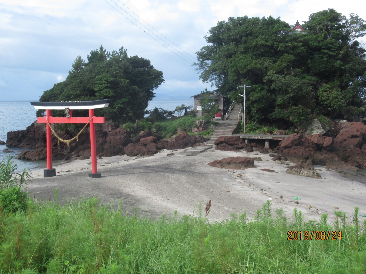 海に突き出た神社で、海岸とは砂洲でつながっており、急な崖を登り到着します。